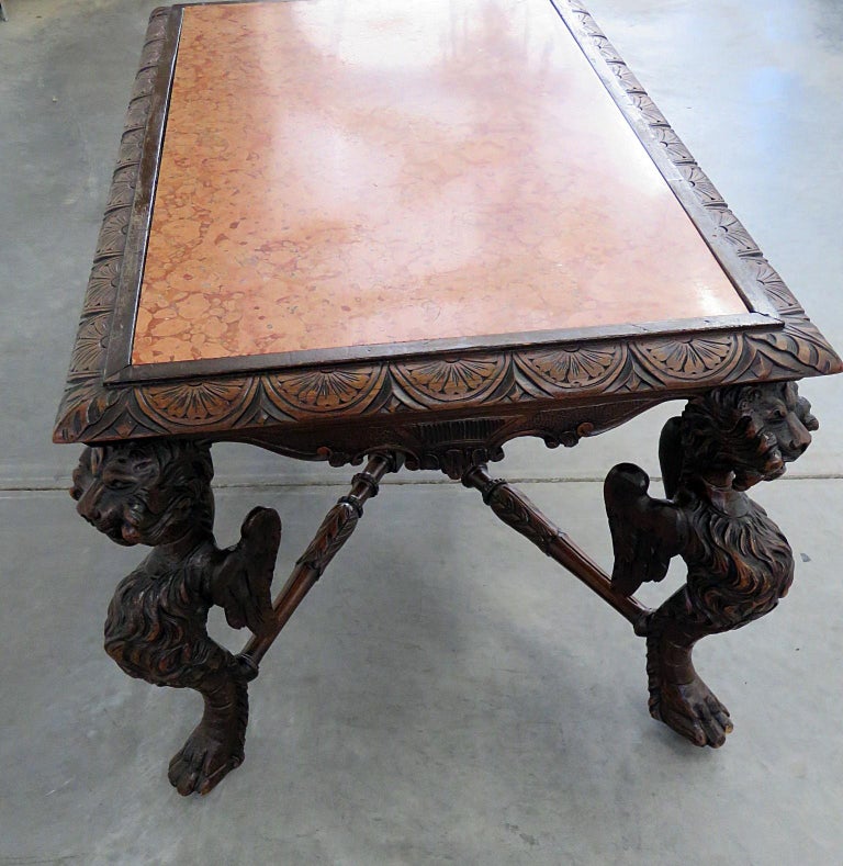 Outstanding carved victorian walnut marble top table 1870 nice.